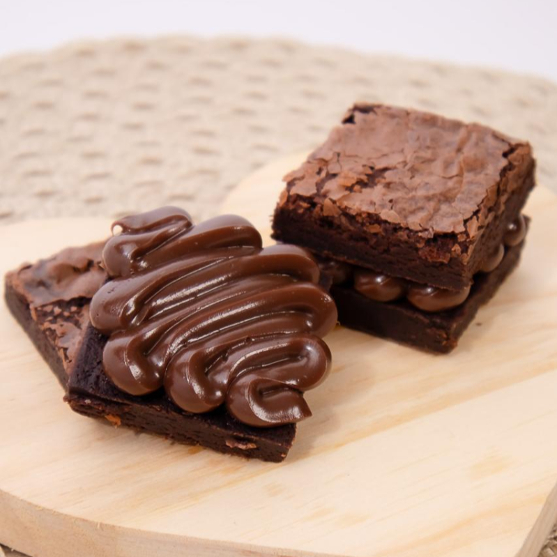 Brownie molhadinho com casquinha crocante e recheio cremoso de brigadeiro. Irresistível do começo ao fim! (peso 80 gramas)