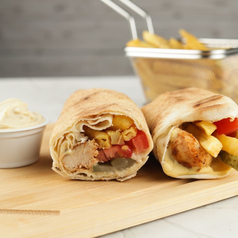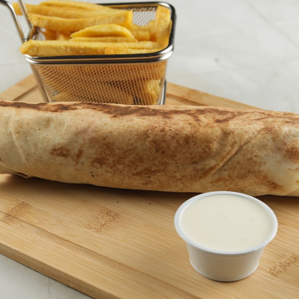 Um sanduiche vegetariano simples, mas cheio de sabor! Pão macio recheado com uma generosa porção de batatas fritas crocantes, salada de repolho, toum(pasta de alho), ketchup e kabis (picles). Uma opção leve e deliciosa para quem busca um lanche diferenciado!