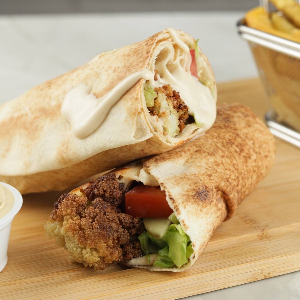 Uma opcao vegetariana irresistivel! Couve-flor frita ficar dourada e crocante, coberta com um cremoso molho de tahine, tomate fresco, pickles crocantes e alface fresca.