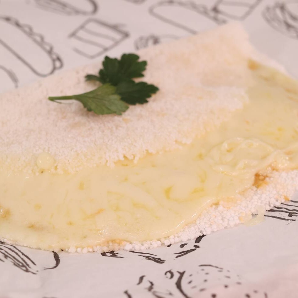 Deliciosa massa de tapioca feita sobre o queijo derretido, trazendo sabor do queijo gratinado e aquele crocante na parte de fora da tapioca com delicioso recheio de calabresa perdigão com muito Catupiry ou Cheddar, trazendo uma perfeita combinação com a calabresa e finalizando com uma pitada de orégano realçando o sabor. Ótimo pedido para um café da manhã saudável , um almoço barato , e um jantar