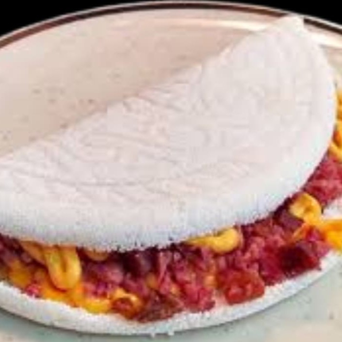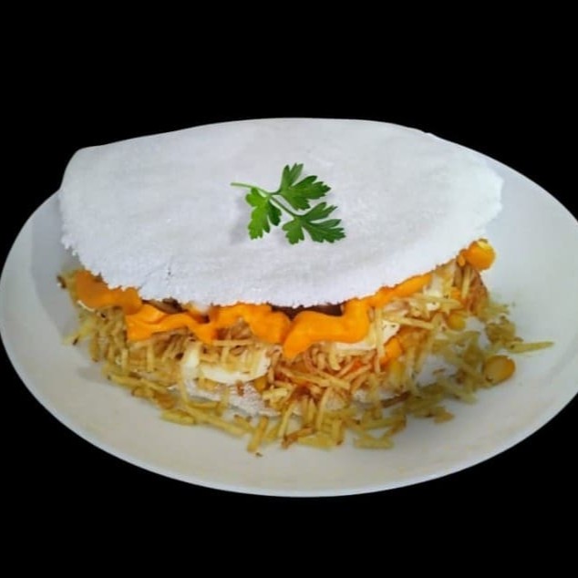 Tapioca c/ manteiga, atum, mussarela, calabresa, bacon, orégano, milho e Catupiry e Cheddar