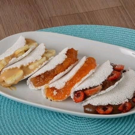 Massa tapioca (100grs), doce de leite e canela. ----Palavras chaves---- promoções , cupom , entrega rápida , entrega gratis , tapioca , tapiocas , comida saudavel , sobremesas , sobremesas saudáveis