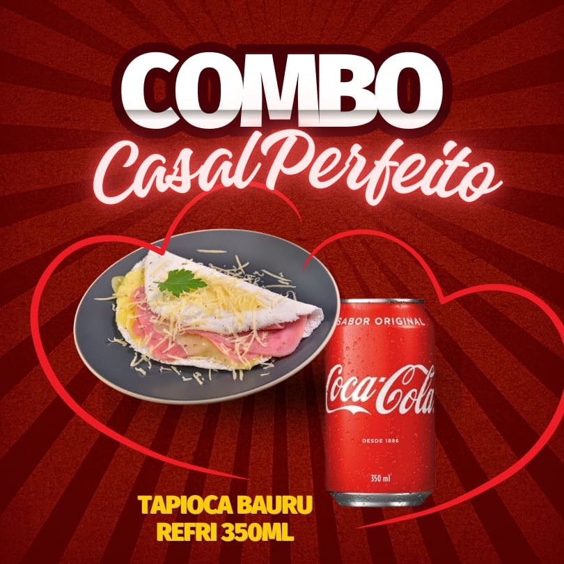 Aproveite já o combo com super desconto uma tapioca Bauru, 1 Nutella com morango e refrigerante da Coca-Cola ----Palavras chaves---- combo , desconto . Promoção , tapioca , bauru , Nutella , Coca-Cola , entrega grátis - entrega rápida - almoço - Janta - sobremesa