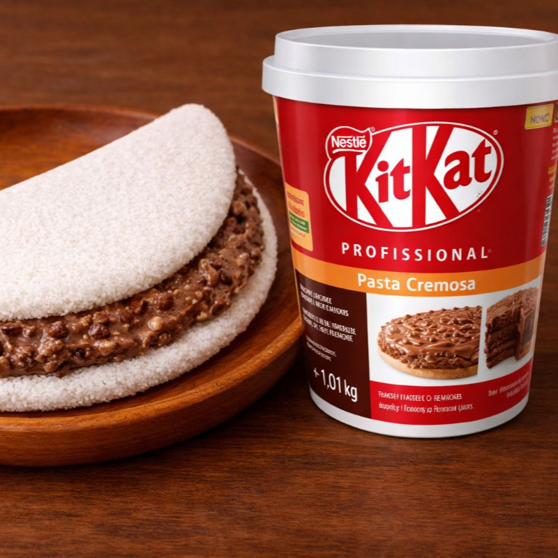 Tapioca recheada com pasta de prestígio da Nestlé