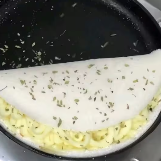 Massa de tapioca artesanal, muçarela, requeijão, bacon, milho e orégano.