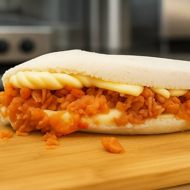 Massa de tapioca artesanal, frango desfiado e requeijão cremoso premium.