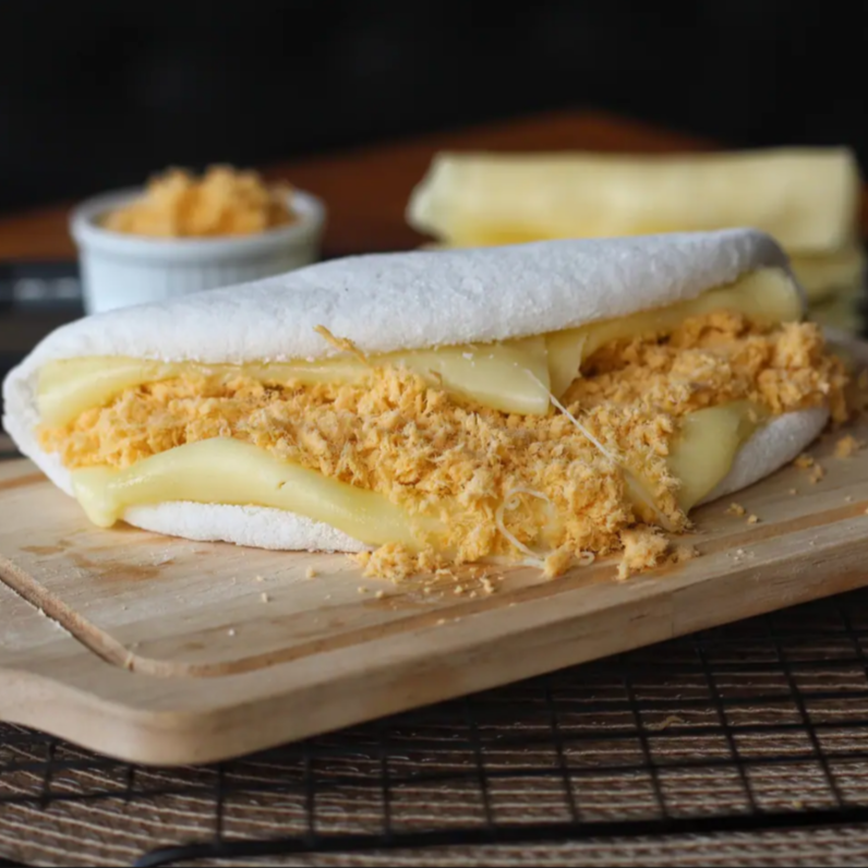 Massa de tapioca artesanal, mussarela, requeijão e orégano.