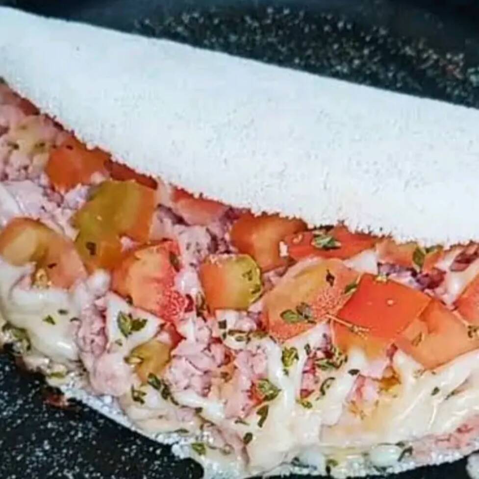 Massa de tapioca artesanal, Presunto, Mussarela, Requeijão, Tomate e Orégano.
