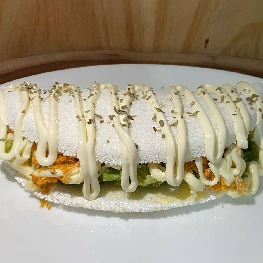 Massa de Tapioca Recheada Com Manteiga, Brócolis, Frango Desfiado, Catupiry, Mussarela Cream Cheese, Orégano. , Aprox. 400g,