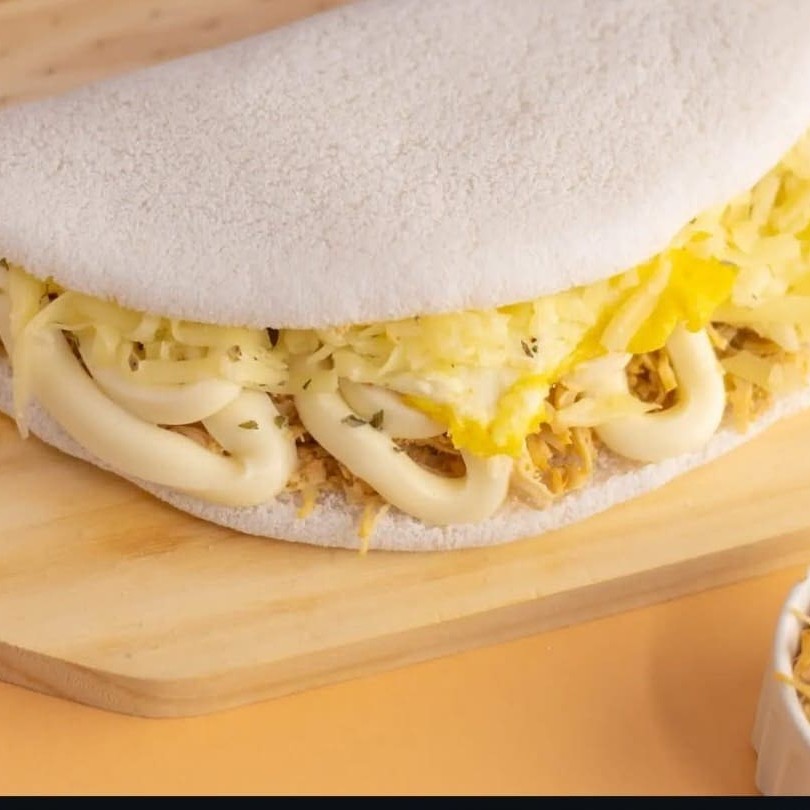 Massa de tapioca Premium, Recheada com frango e Catupiry