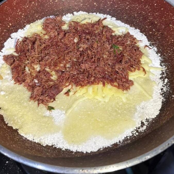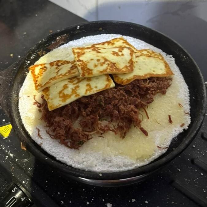 Uma combinação irresistível de carne seca desfiada e queijo coalho derretido, trazendo o sabor autêntico do Nordeste.