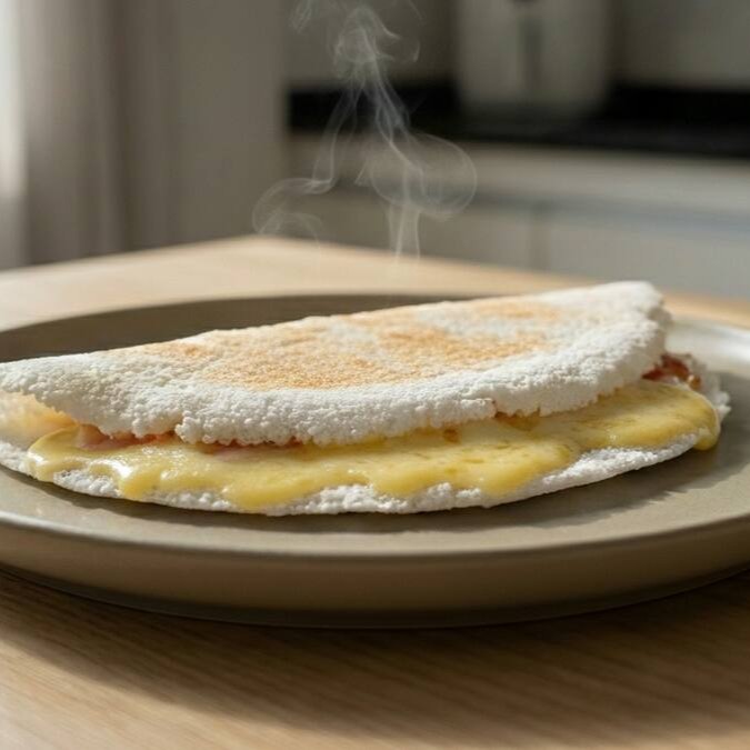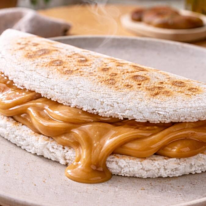 Simplicidade e sabor: tapioca quentinha com manteiga derretida, perfeita para quem aprecia o clássico.