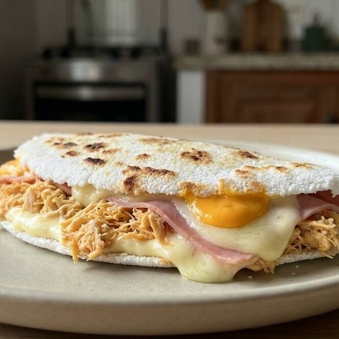 Uma combinação irresistível de frango desfiado, cremoso Catupiry, presunto suculento, queijo derretido e um toque especial de cheddar.