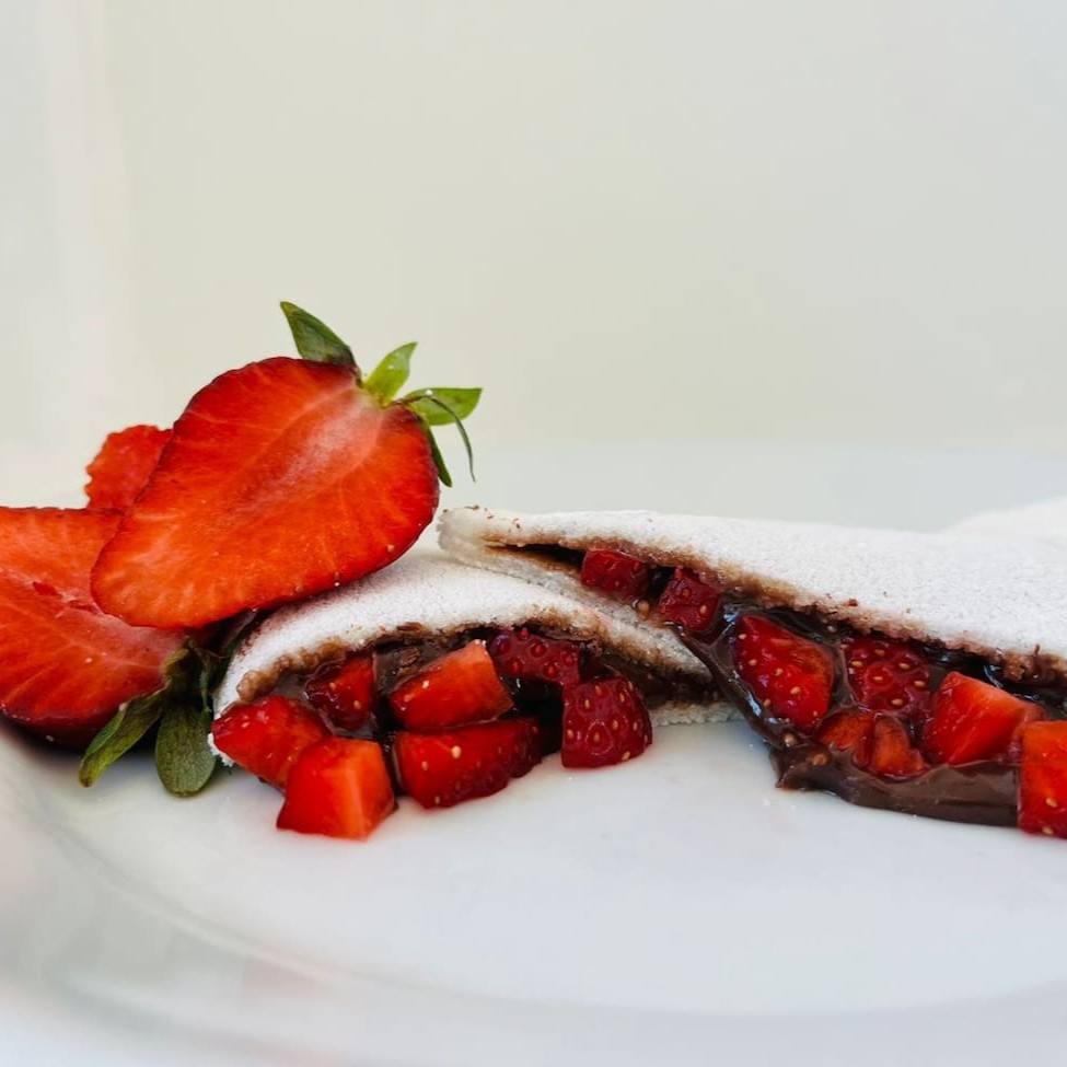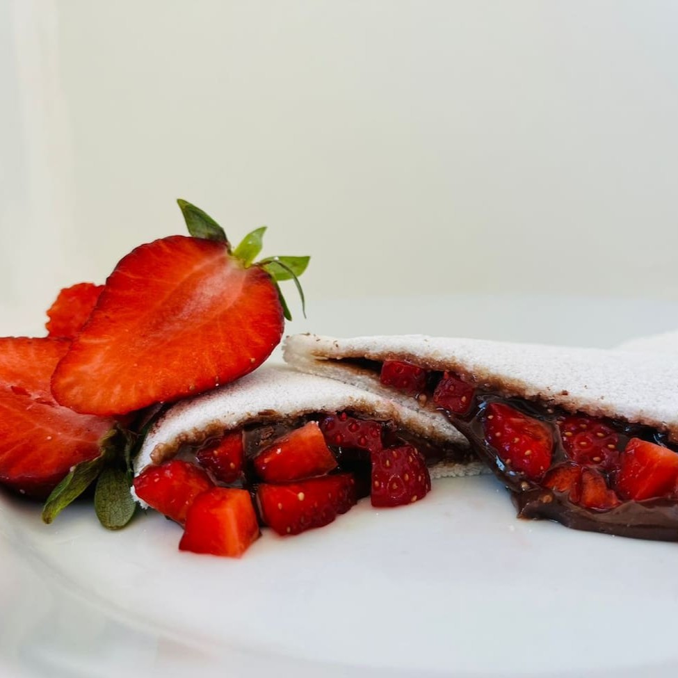 🌿🍓 Lança de Morango e Cetro de Avelã A goma original do Norte, branca como a neve e firmemente ligada, serve de base imbatível para o frescor intenso do morango, que dança em perfeita harmonia com o creme aveludado de avelã. Essa combinação poderosa atravessa o paladar como uma lança certeira, entregando equilíbrio entre doçura e acidez, força e delicadeza. Cada mordida é uma celebração da textura única da goma do Norte, que sustenta e valoriza esses sabores com precisão e nobreza🌿🍓