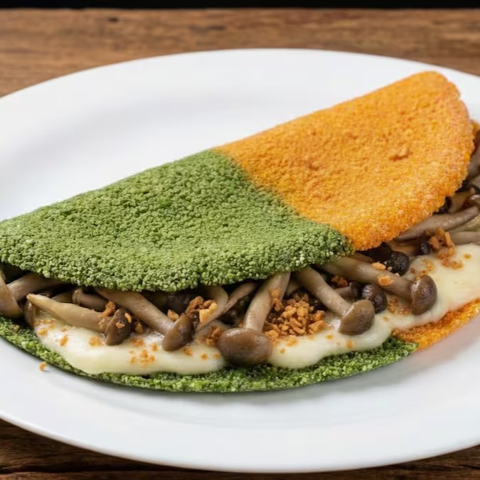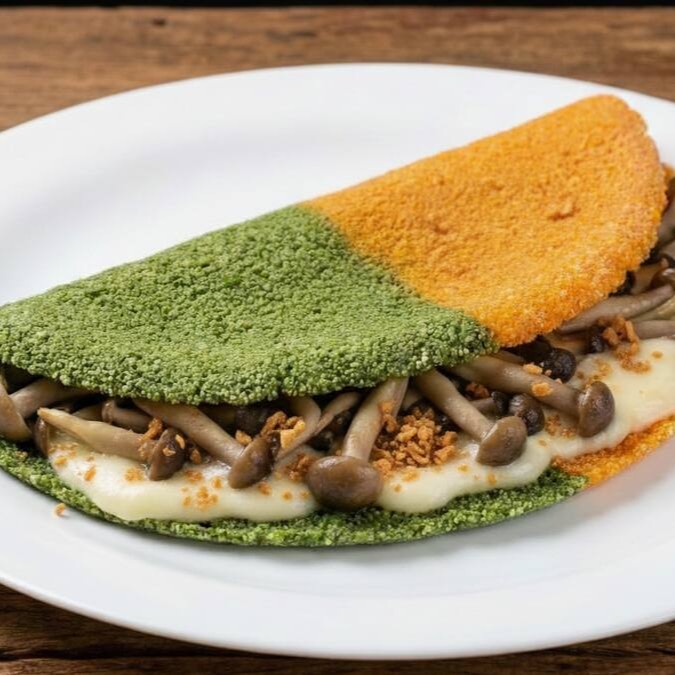 Eleve sua experiência com nossa tapioca artesanal, feita com uma massa exclusiva de couve e cenoura.
