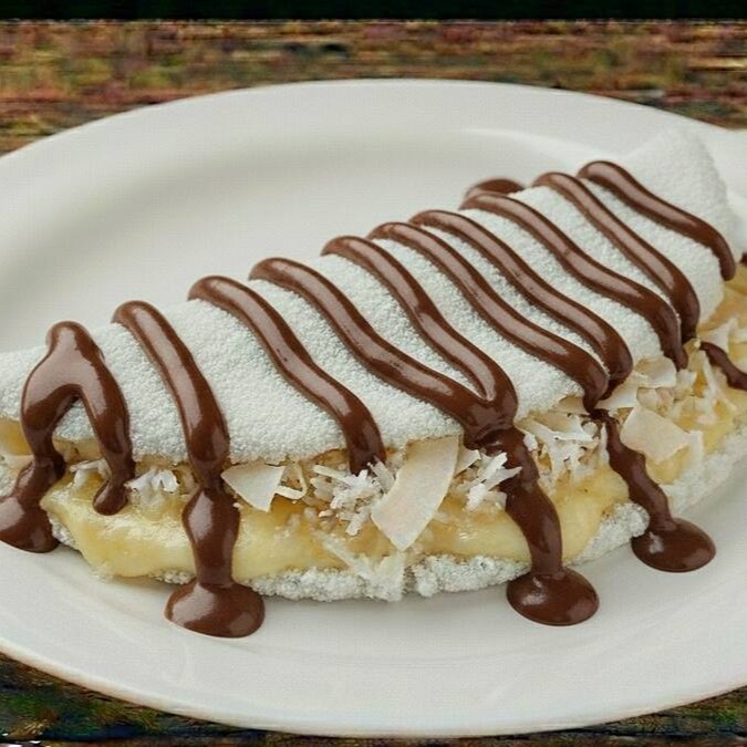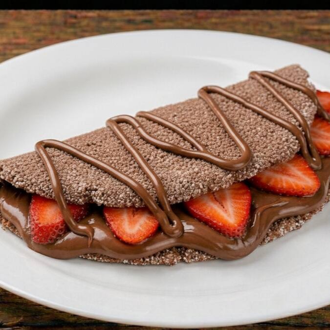 Tapioca Explosão de Sabor: Goma exclusiva de Ovomaltine, recheada com a autêntica Nutella e bananas selecionadas. O clássico que você ama, com um toque extra de crocância.