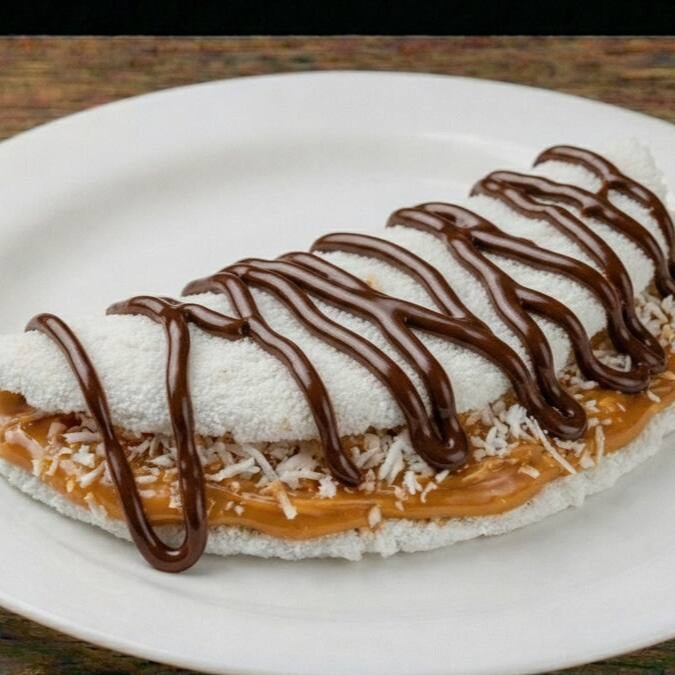 O equilíbrio perfeito entre o doce de leite aveludado e a paçoca esfarelada na hora. Simples, rústica e apaixonante. Experimente a nossa Tapioca de Paçoca com Doce de Leite!