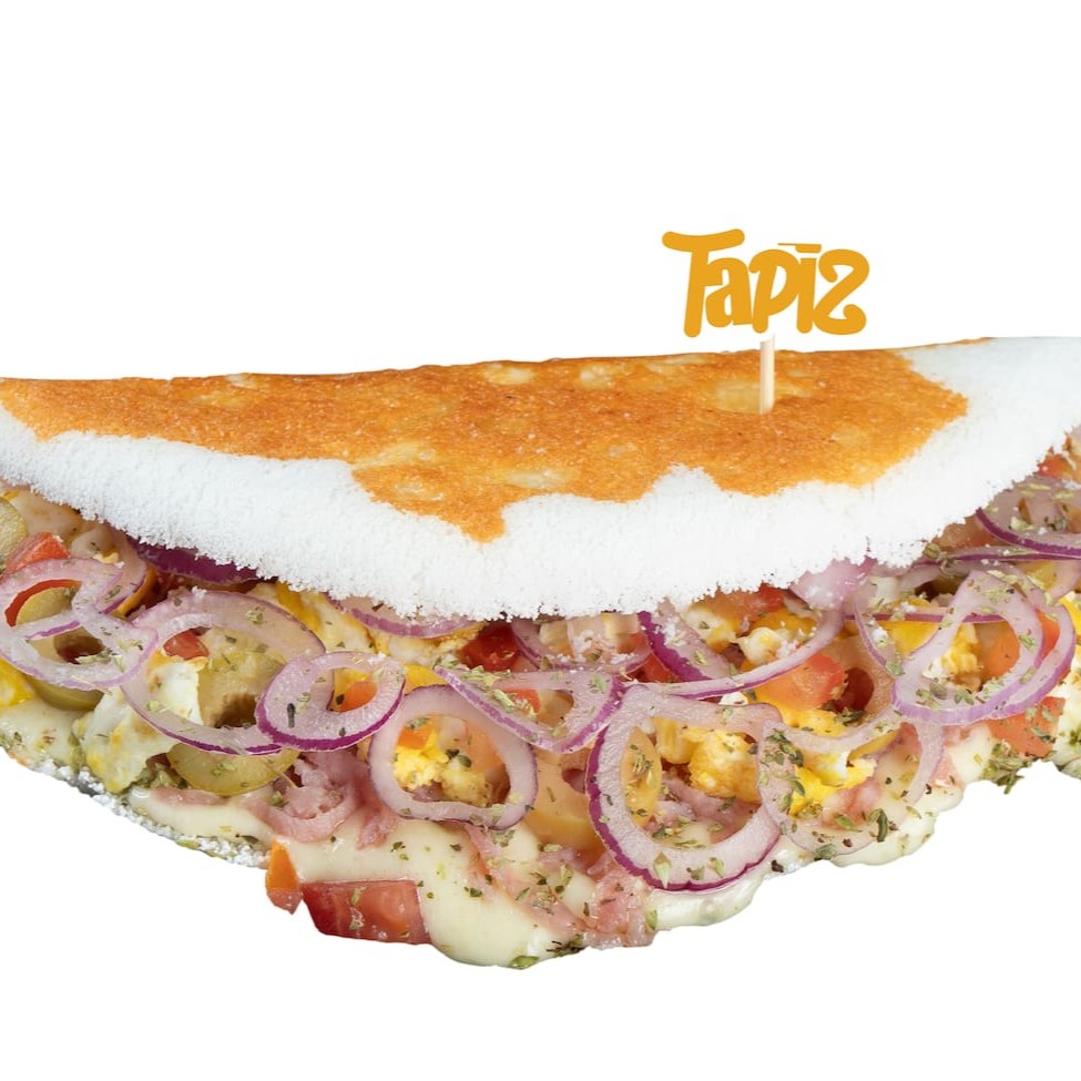 Essa especial é feita na famosa massa Crok Cheese, uma massa de tapioca com queijo, o recheio é feito com presunto ralado, queijo mussarela, ovo, azeitonas verdes, tomate picado, cebola roxa ralada e orégano.