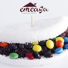Massa Artesanal de Tapioca sem Conservantes e sem Glúten. O recheio é feito com Chocolate ao Leite Premium Ralado e Mms Original.