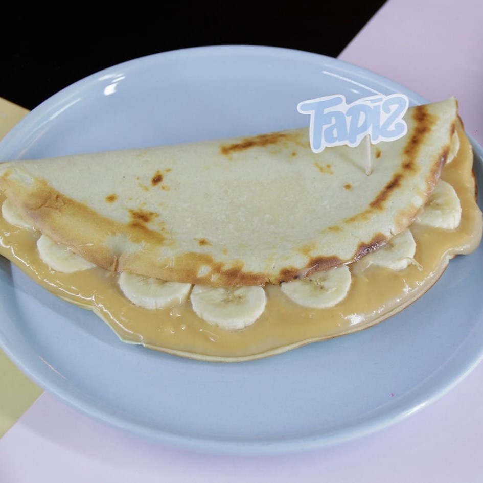 Massa Artesanal de Tapioca sem Conservantes e sem Glúten. O recheio é Banana/Leite Condensado e Canela.