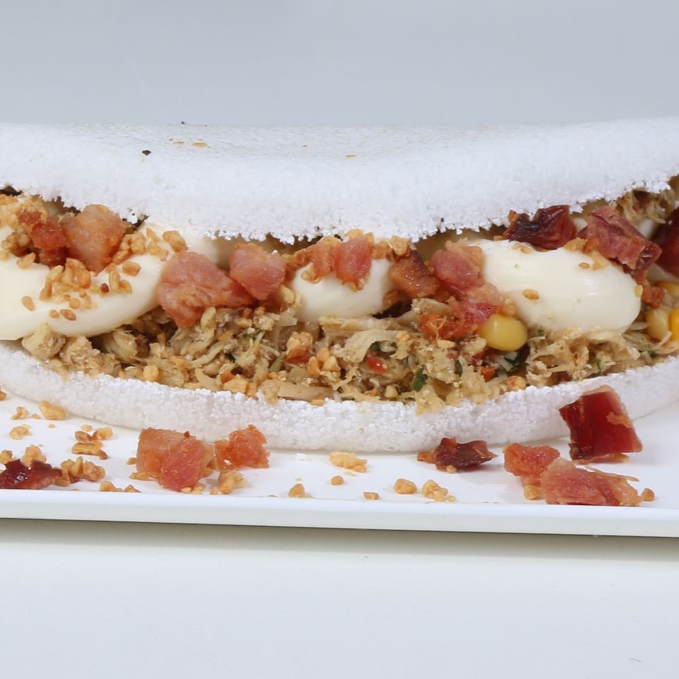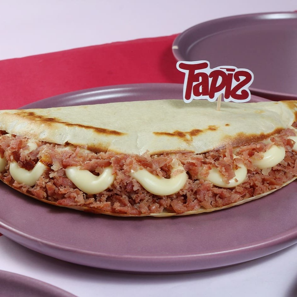 Essa é mais que especial, feita na famosa massa Crok Cheese, uma massa de tapioca com queijo, o recheio é feito com a Carne de Panela desfiada, queijo mussarela, molho especial grill, bacon, tomate e cebola roxa ralada. Tudo feito com muito amor e artesanalmente.