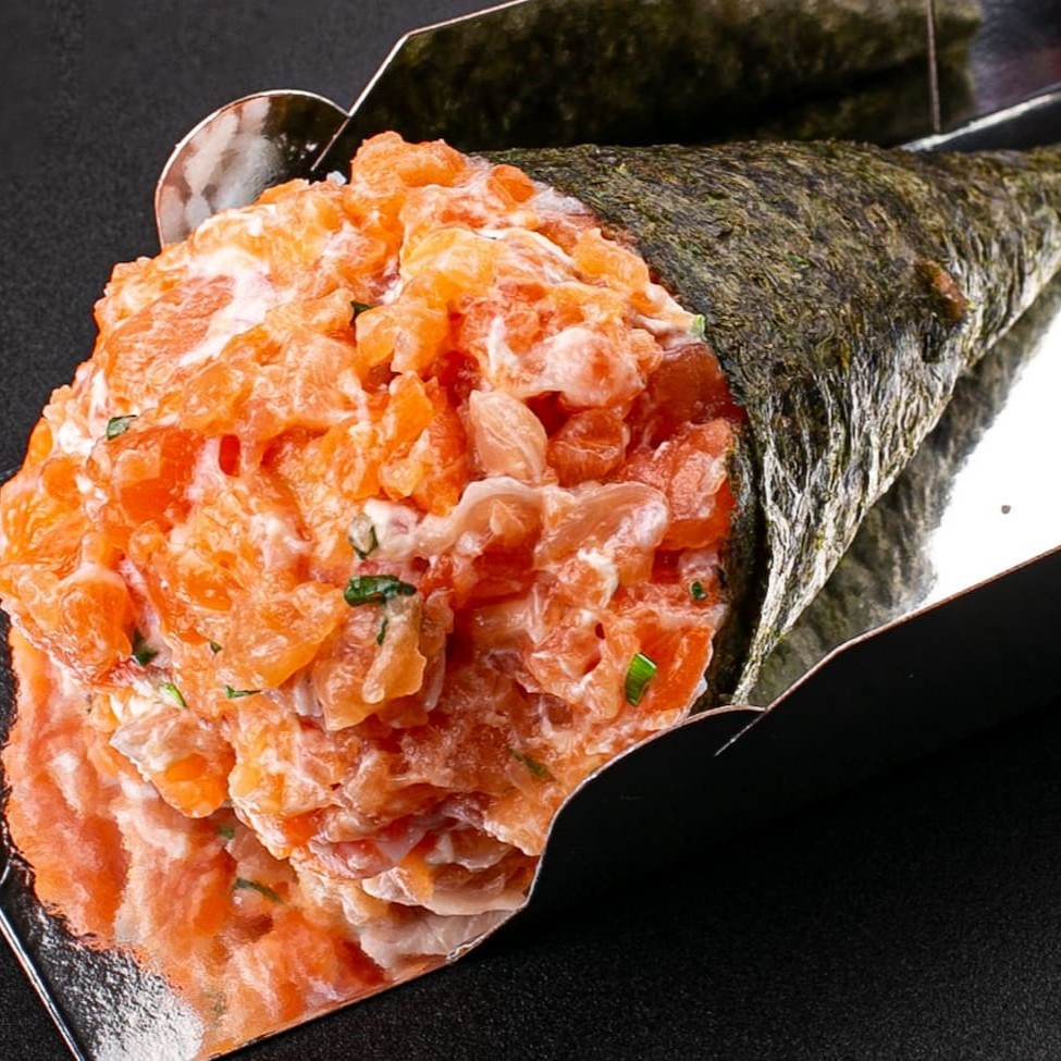 Desfrute do nosso Temaki de Salmão Grelhado, uma delícia culinária com 150 gramas de puro sabor. O prato é composto por suculentos pedaços de salmão, grelhados à perfeição para realçar o sabor e a textura. O sabor robusto do salmão é equilibrado pelo arroz shari de grão curto, que é envolto em uma folha crocante de nori, adicionando um toque de complexidade. Junte-se a isso a adição de cream cheese, que contribui com sua cremosidade distintiva, e a cebolinha fresca picada para um toque final de frescor. Um deleite que promete uma experiência gastronômica inesquecível!