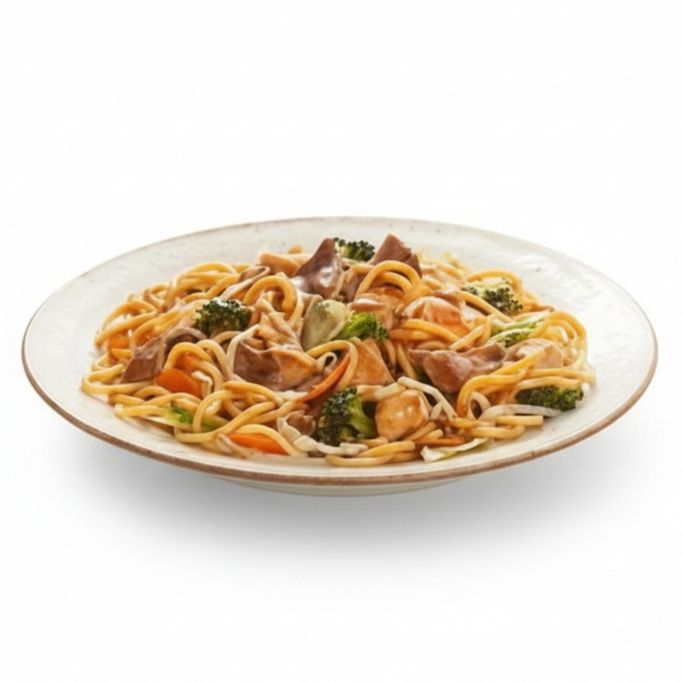 Apresentamos o nosso Yakissoba Especial de 800g, uma refeição generosa e saborosa. Este prato é uma combinação harmoniosa de macarrão suavemente cozido ao ponto perfeito, com pedaços de carne bovina tenra e frango suculento, realçados pelo frescor dos frutos do mar. Acompanha uma variedade de legumes crocantes, cuidadosamente selecionados e salteados, que acrescentam um toque de cor e uma explosão de sabor. Uma deliciosa experiência gastronômica que vai te transportar diretamente para a rica culinária oriental.