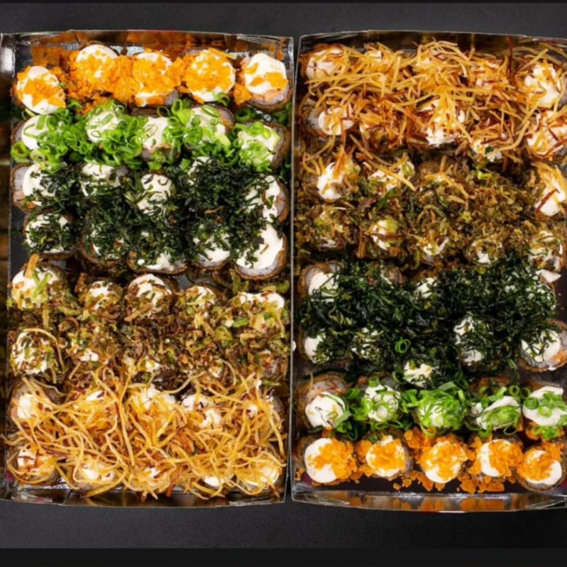 10 uramaki com Doritos, 10 uramaki com couve, 10 uramaki com batata, 10 uramaki com cream cheese