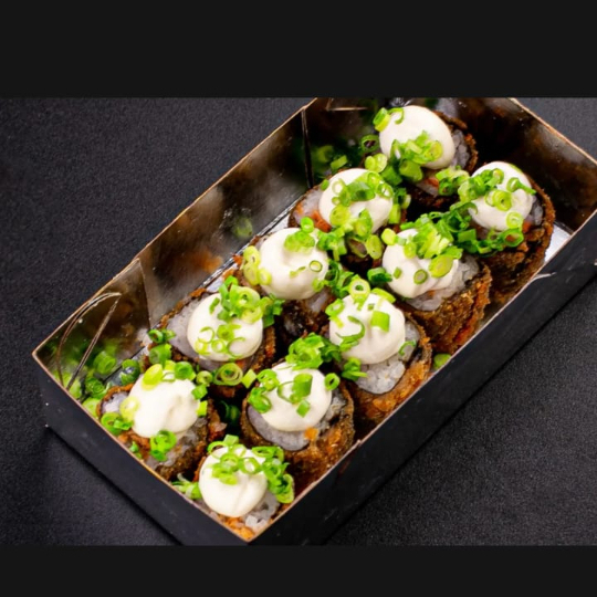 Hot Roll Premium Sushi preparado com arroz (shari), recheado com camarão grelhado cream cheese. Servido frito com cebolinha. TARE ENVIADO A PARTE.
