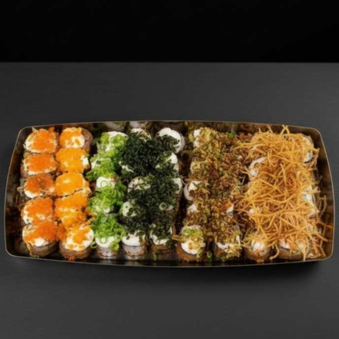 Aproveite nossa promoção de 80 hot rolls sortidos! Você terá a chance de saborear 20 deliciosos hot rolls cobertos com a crocância inigualável dos Doritos, outros 20 hot rolls com batata Crisp, oferecendo um toque irresistível a cada mordida. Além disso, 20 hot rolls com couve frita, trazendo uma textura única para sua experiência gastronômica, e, por fim, 20 hot rolls com alho poró, proporcionando um sabor suave e sofisticado. Uma seleção que une tradição e inovação em um só prato!
