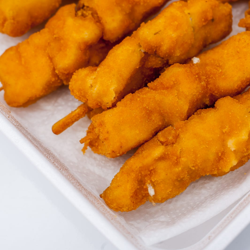 Espetinho De Frango Empanado Com Bacon