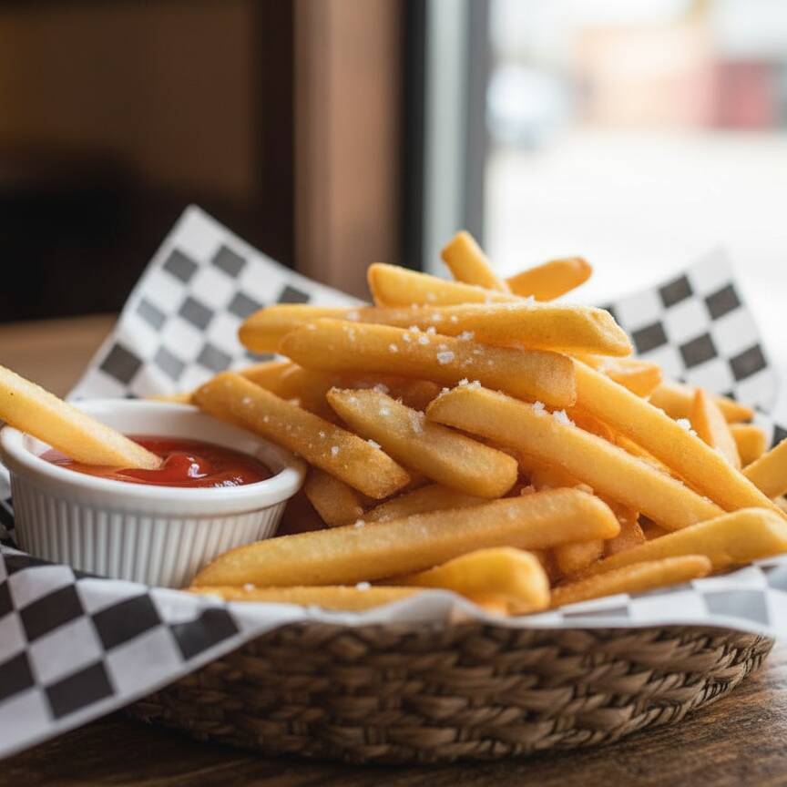 Batata frita crocante, um clássico que não pode faltar em nenhuma refeição, perfeita para compartilhar.