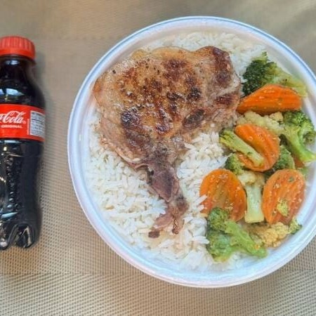 Uma combinação clássica, aquele arroz soltinho, feijão com caldinho, a bisteca suculenta, bem temperada, acompanhada de mix de legumes, irresistível.