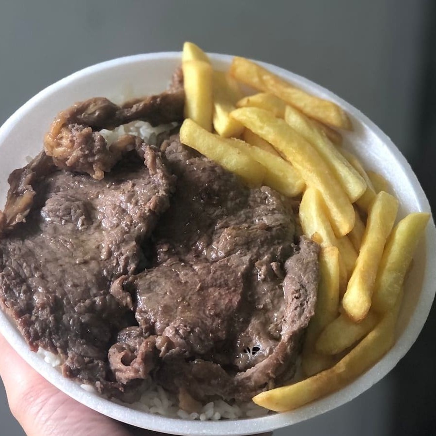 Marmita de Contra Filé com Fritas , Campeã de vendas, arroz soltinho, feijão com caldinho, contra filé selecionado, aquele bem suculento, sabe? Acompanhado de fritas marmita, almoço, filé, carne, frango, parmegiana, entrega gratis