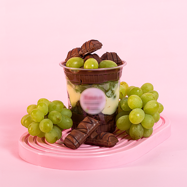 Uma sobremesa irresistível feita em camadas: uvas fresquinhas, creme de chocolate e creme branco cremosos e pedaços do nosso delicioso brownie. Doce, leve e perfeito para adoçar qualquer momento!