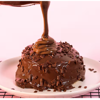Delicioso Mini Vulcão, com massa amanteigada sabor chocolate, cobertura de Creme Belga sabor Chocolate.