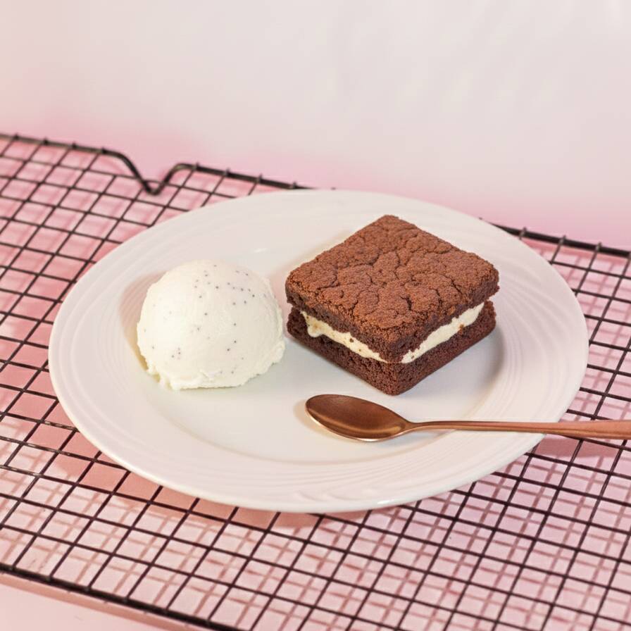 Sanduiche De Brownie + Sorvete De Creme (1 Bola)