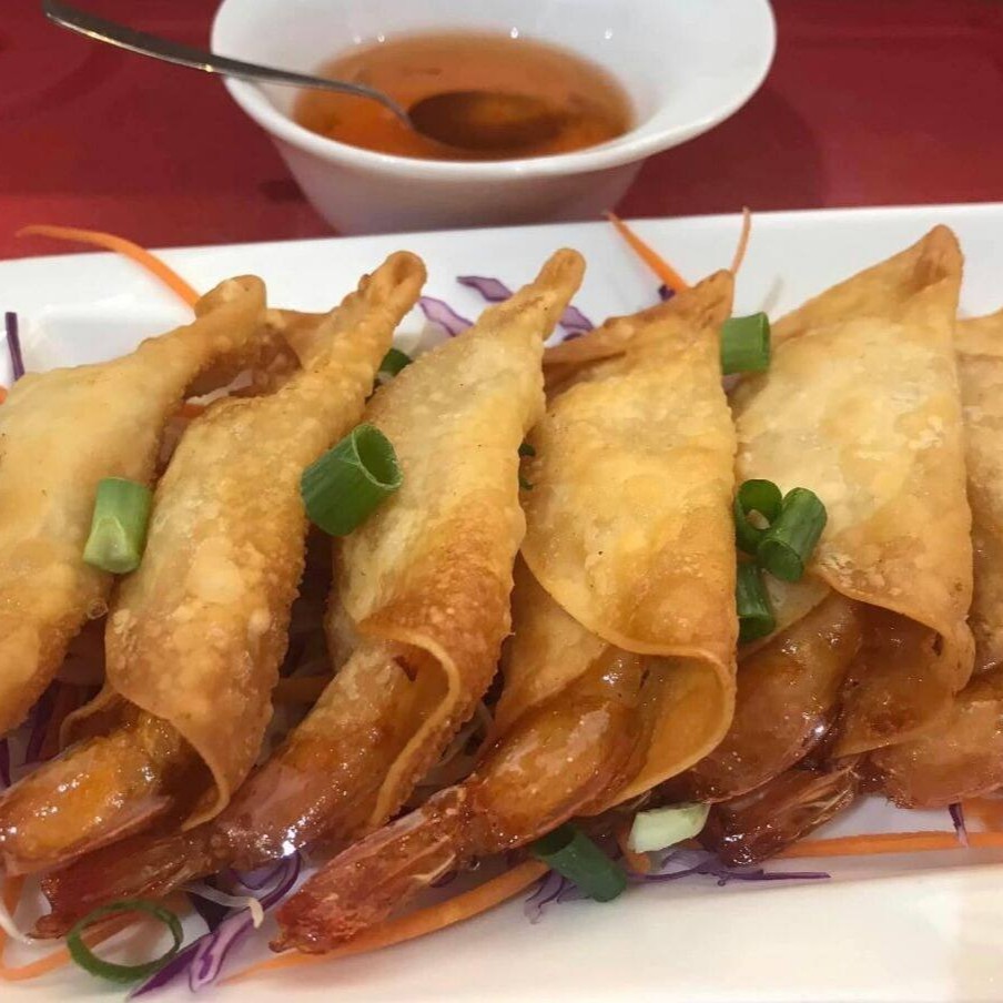 Camarão envolto com massa crocante, servidos com molho agridoce e pimenta. (6unidades)
