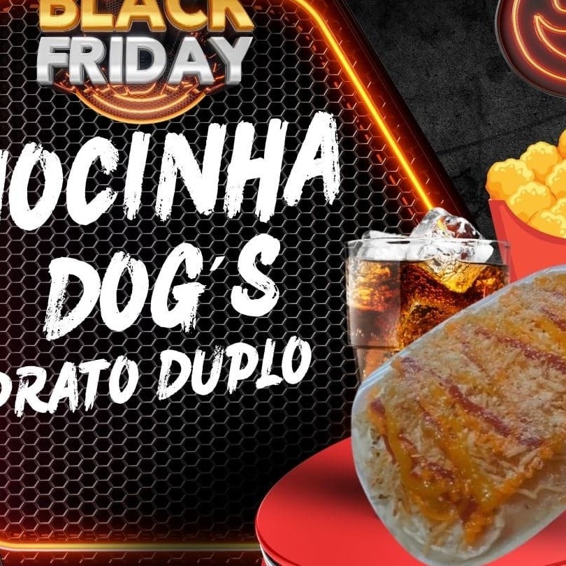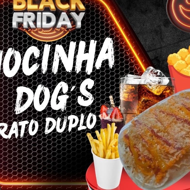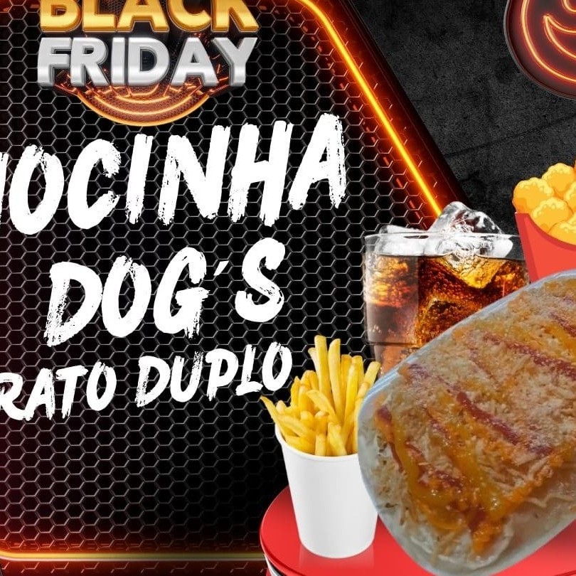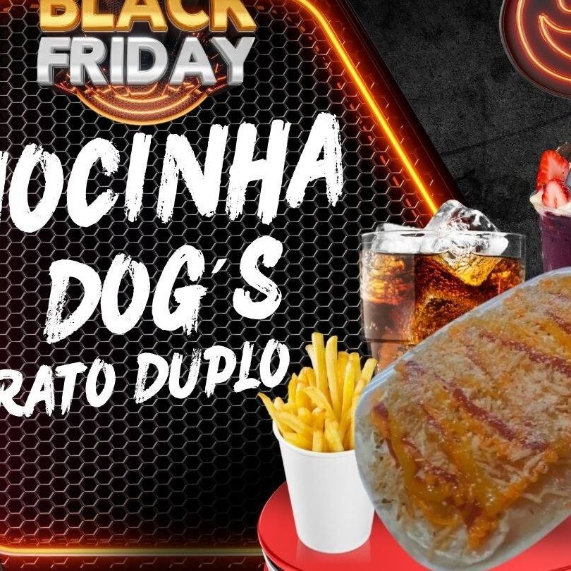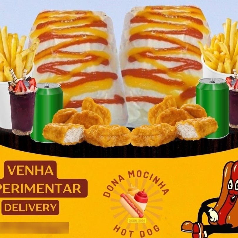 4 Dogão Duplo = 1 Pão de banha, 2 Salsichas, Vinagrete, Repolho, Batata palha, Purê, Maionese, Ketchup, Mostarda, Cheddar, Catupiry e Queijo ralado + 1 Porçaão Nuggts M + 1 Refri 2 Litros