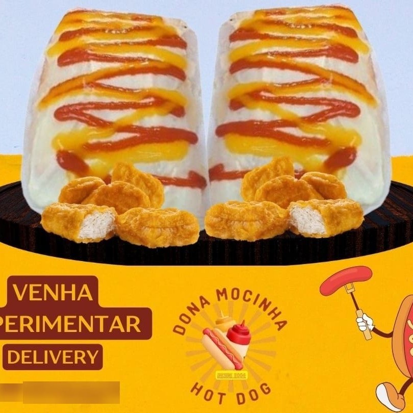 4 Duplo = 1 Pão de banha, 2 Salsichas, Vinagrete, Repolho, Batata palha, Purê, Maionese, Ketchup, Mostarda, Cheddar, Catupiry e Queijo ralado + 2 Porçaão Nuggts Média
