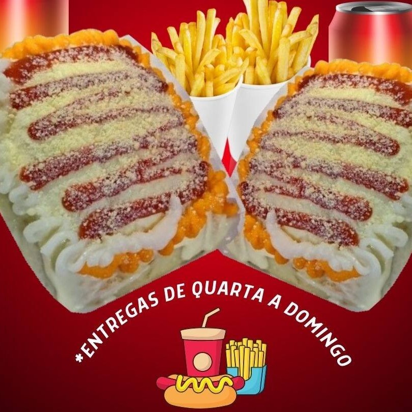 2 Tradicional =1 Pão de banha , 1 Salsicha, Vinagrete, Repolho, Batata palha, Purê, Maionese,Ketchup,Mostarda + 2 Nuggts
