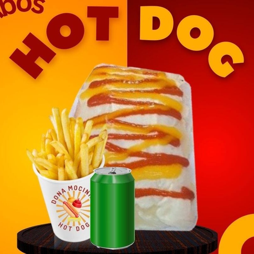 Pão de Banha,4 Salsichas, Vinagrete, Repolho, Batata palha, Purê, Maionese,Katchup, Mostarda, Cheddar,Catupiry, Queijo ralado e mais uma camada de Batata palha + Porção de Batata Frita P + Refrigerante 350ml
