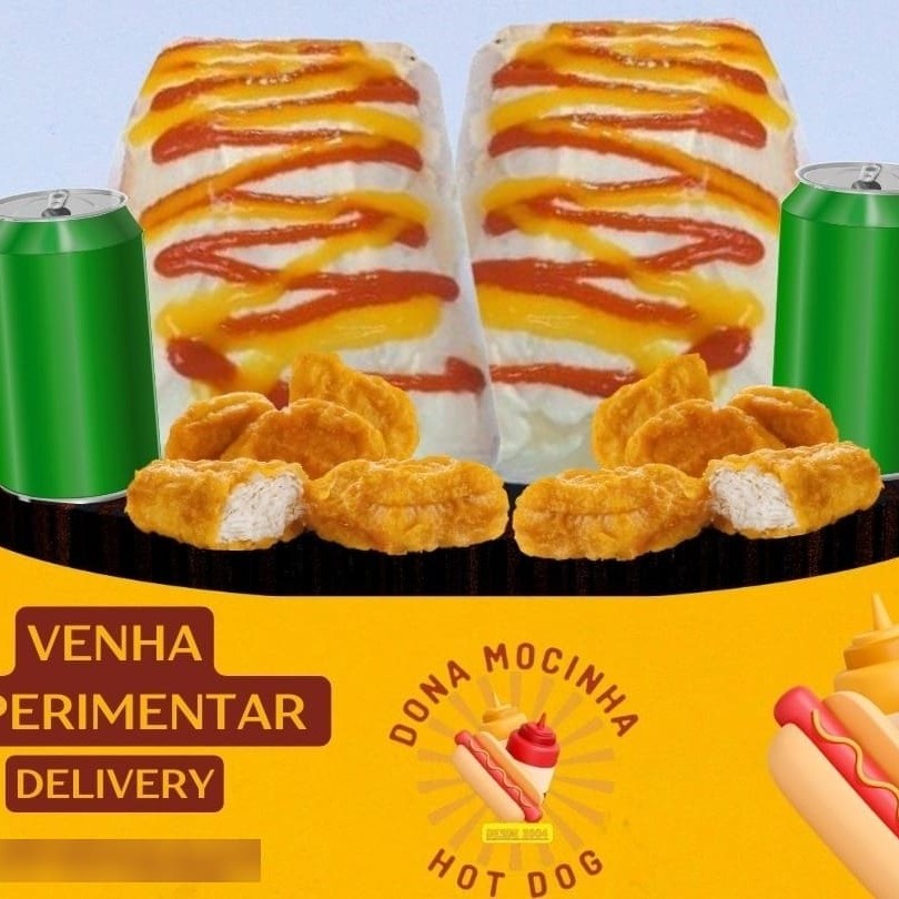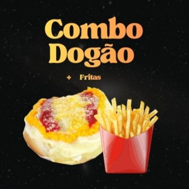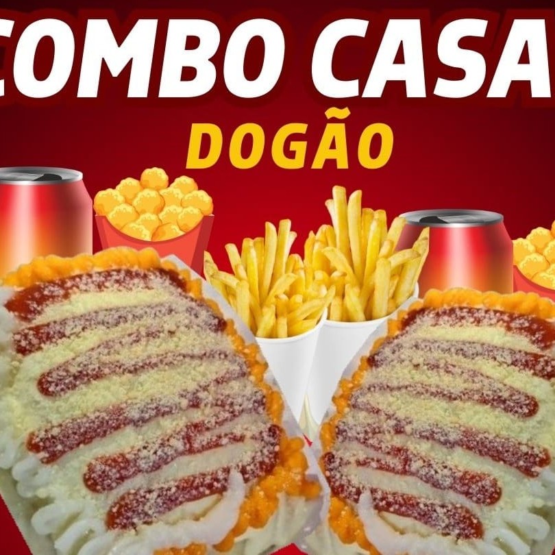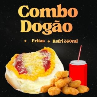 1 Dogão = 1 Pão de banha, 1 Salsichas, Vinagrete, Repolho, Batata palha, Purê, Maionese, Ketchup, Mostarda, Cheddar, Catupiry e Queijo ralado + Porção Nuggts P + 1 Refrigerante 350ml