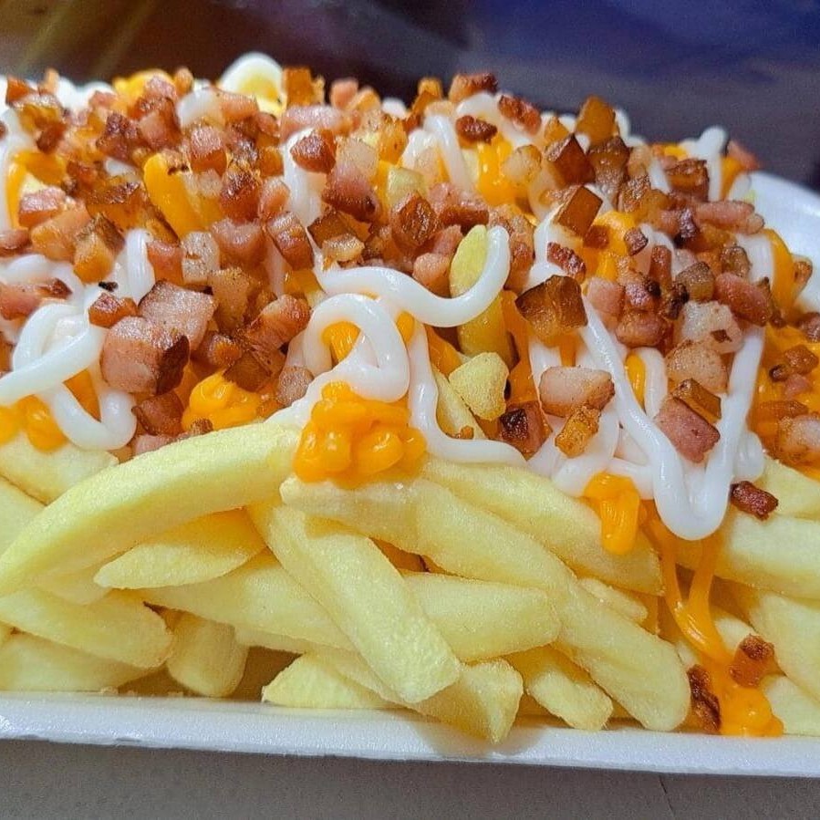 Batata , maionese , ketchup , mostarda , Cheddar , Catupiry e Bacon ou Calabresa