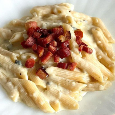 "Blend de queijos especiais Fundidos e cubos de bacon, finalizado com muito queijo, bacon e cebolinha, molho muito cremoso e ""queijudo"" daquele jeitinho de puxar o garfo."