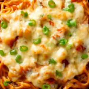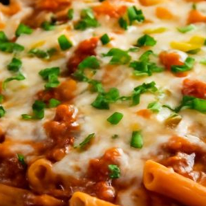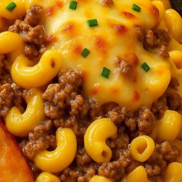 Delicioso macarrão com cheddar cremoso, carne moída finalizado com muito queijo e cebolinha.