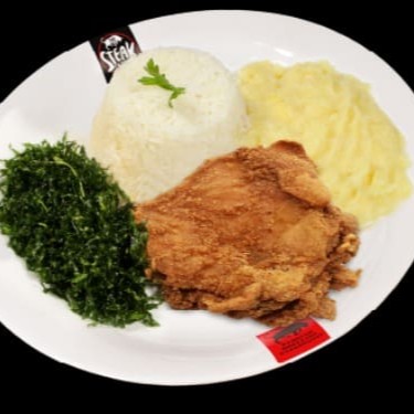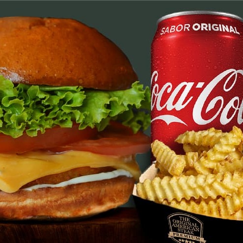 Pão, Alface, Tomate, Queijo American Cheese, Maionese Artesanal, Filé de Sobrecoxa Empanada. O Combo acompanha 01 Sandwich + 01 Bebida + 01 Batata Frita.