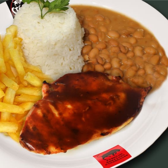 Saboroso filet de frango, marinado e grelhado com molho barbecue.