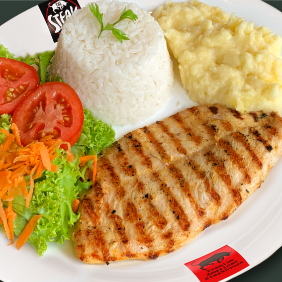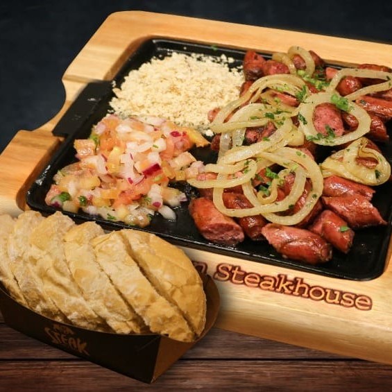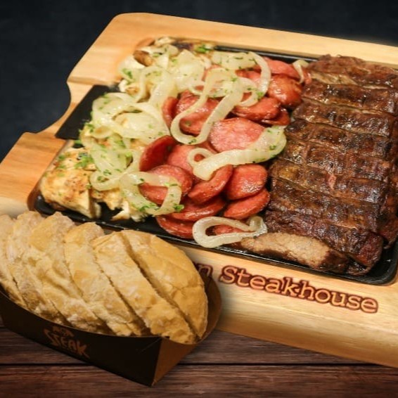 Aproximadamente 200 gramas de Linguiça Calabresa Fatiada + 5 unidades de Frango Sassami Marinado + aproximadamente 260 gramas de Filet de American Steak Grelhado – Acompanha 1 Pão Rústico em Fatias (os pesos informados dos cortes são in natura)