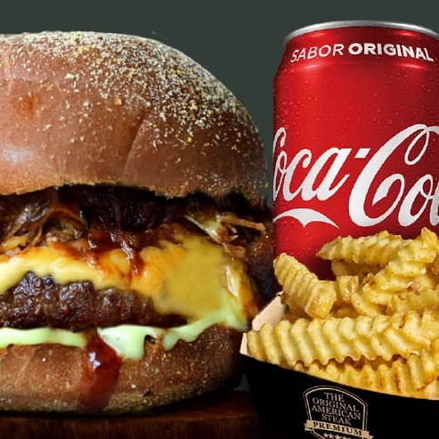 Pão, Costela Suína desfiada com Molho Barbecue, Queijo American Cheese, Molho Honey Mustard, Hambúrguer de Costela Angus 210g. O combo acompanha 01 Burger + 01 bebida + 01 fritas.